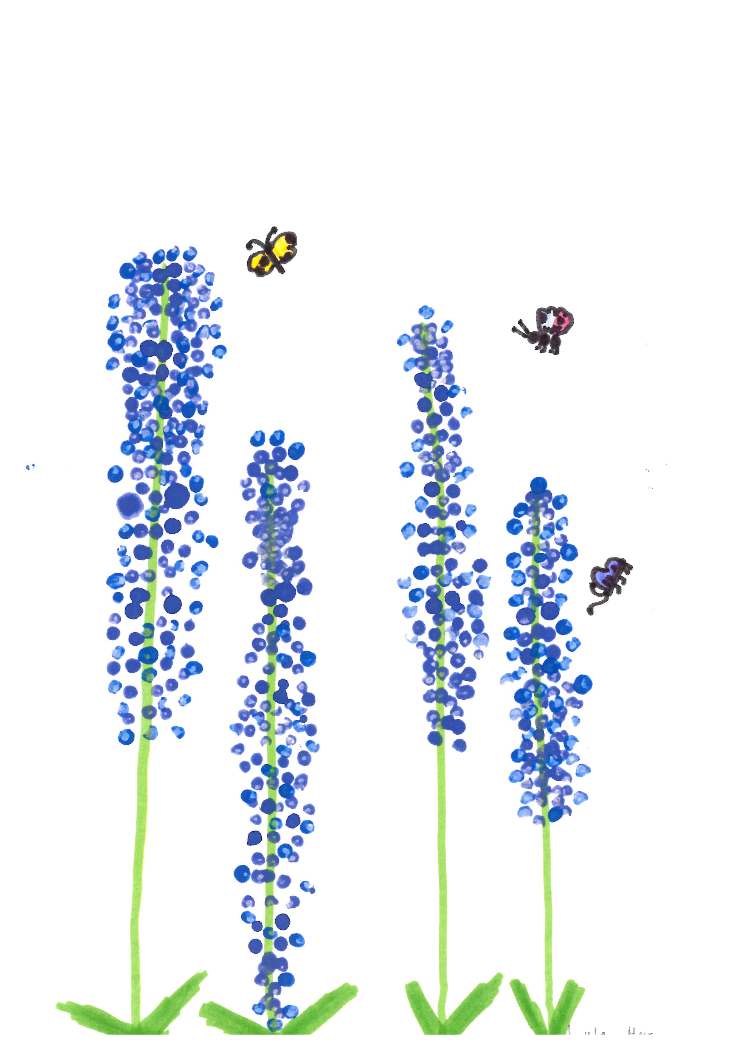 Controlled, yet expressive line work. Carefully applied texture & colour to create a soothing piece.