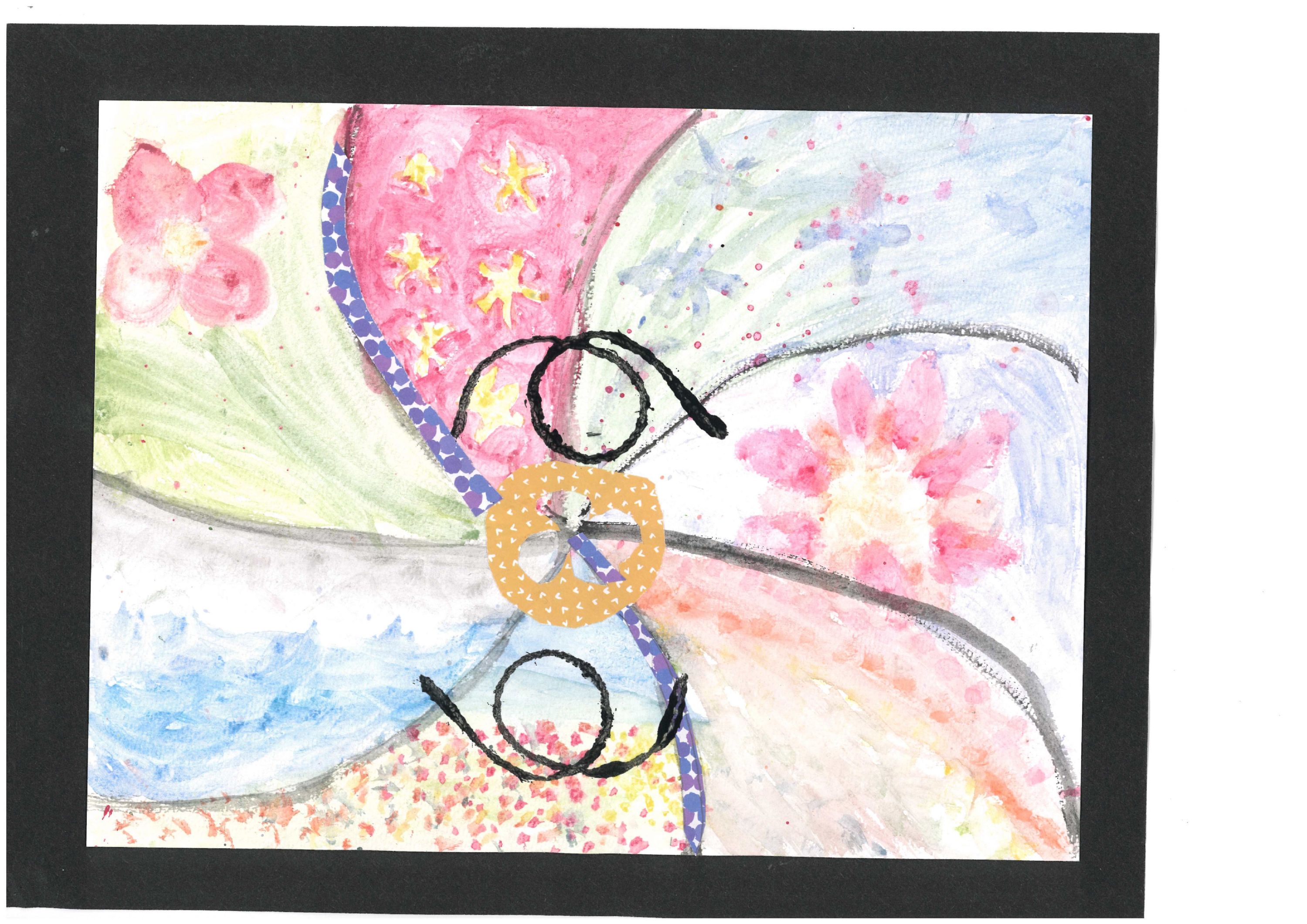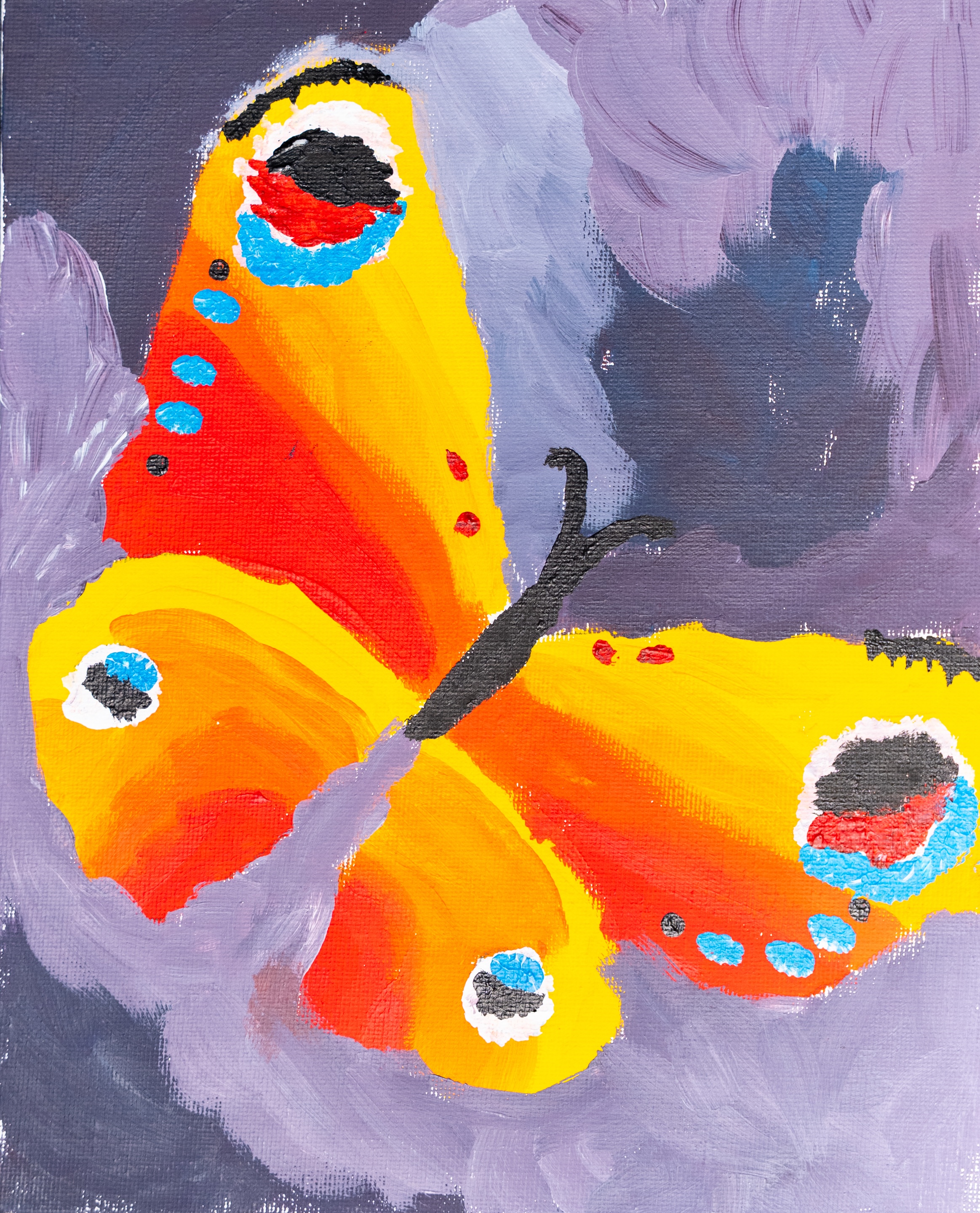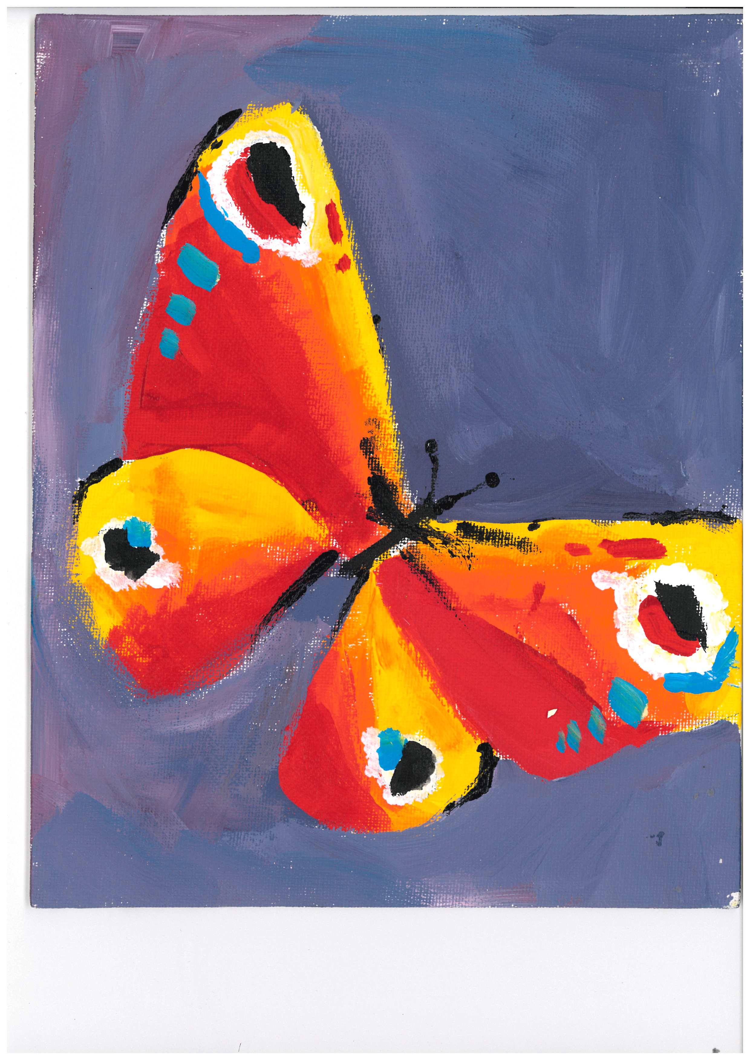 Composition of the butterfly demonstrate appropriate proportions. Energetic brushwork and paint handling.